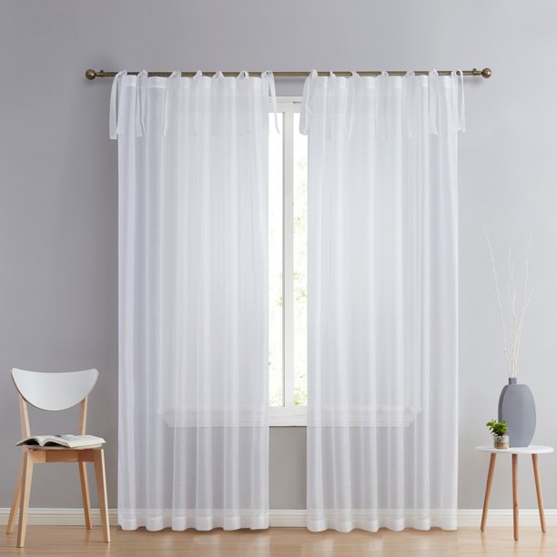 Thd Aurora Semi Sheer Light Filtering Transparent Tie Top Lightweight Floor Length Window Curtains Drapery Panels For Bedroom Living Room White 108 W X 84 L Walmart Com